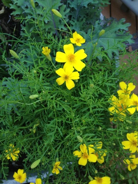 As you see they bring color to a vegetable and herb garden. Pick as edible flowers for salads, cakes, and teas. Marigolds and calendulas are easy to dry and store for later use. Spread the flowers on a screen to dry in a well-ventilated, shady location and store in glass jars.
