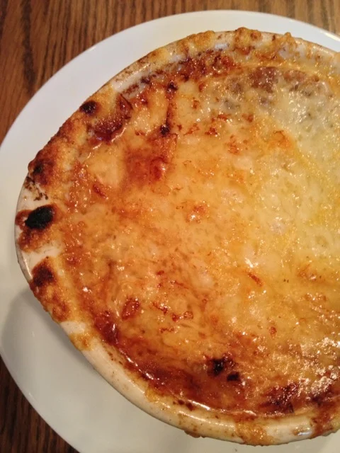 Of course, there is - what would a French onion soup be without a toasted crouton, aka a sop? Sops are used for soaking up a warm liquid, broth, or wine, and was the term used in days of yore. I guess it was only natural that the word soup derived from sop.