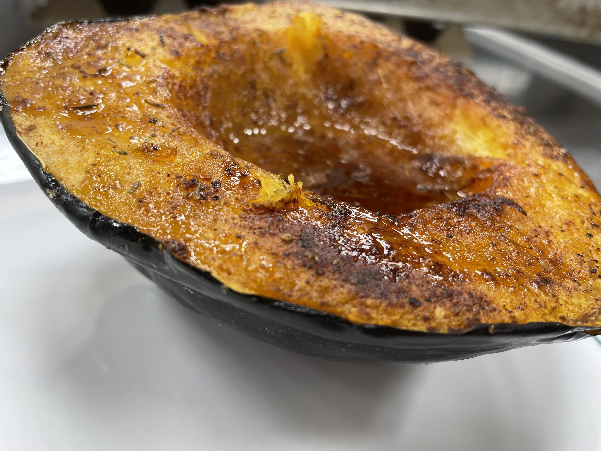 As sweet as candy! This is one of my long-time favorite dishes. Seasonal, simple, and a wow for your guests. A type of winter squash known for its distinctive ribbed, dark green exterior (often with an orange patch) and sweet, nutty, yellow-orange flesh. It is commonly baked, roasted, or stuffed and is a good source of fiber, potassium, and vitamins A and C.