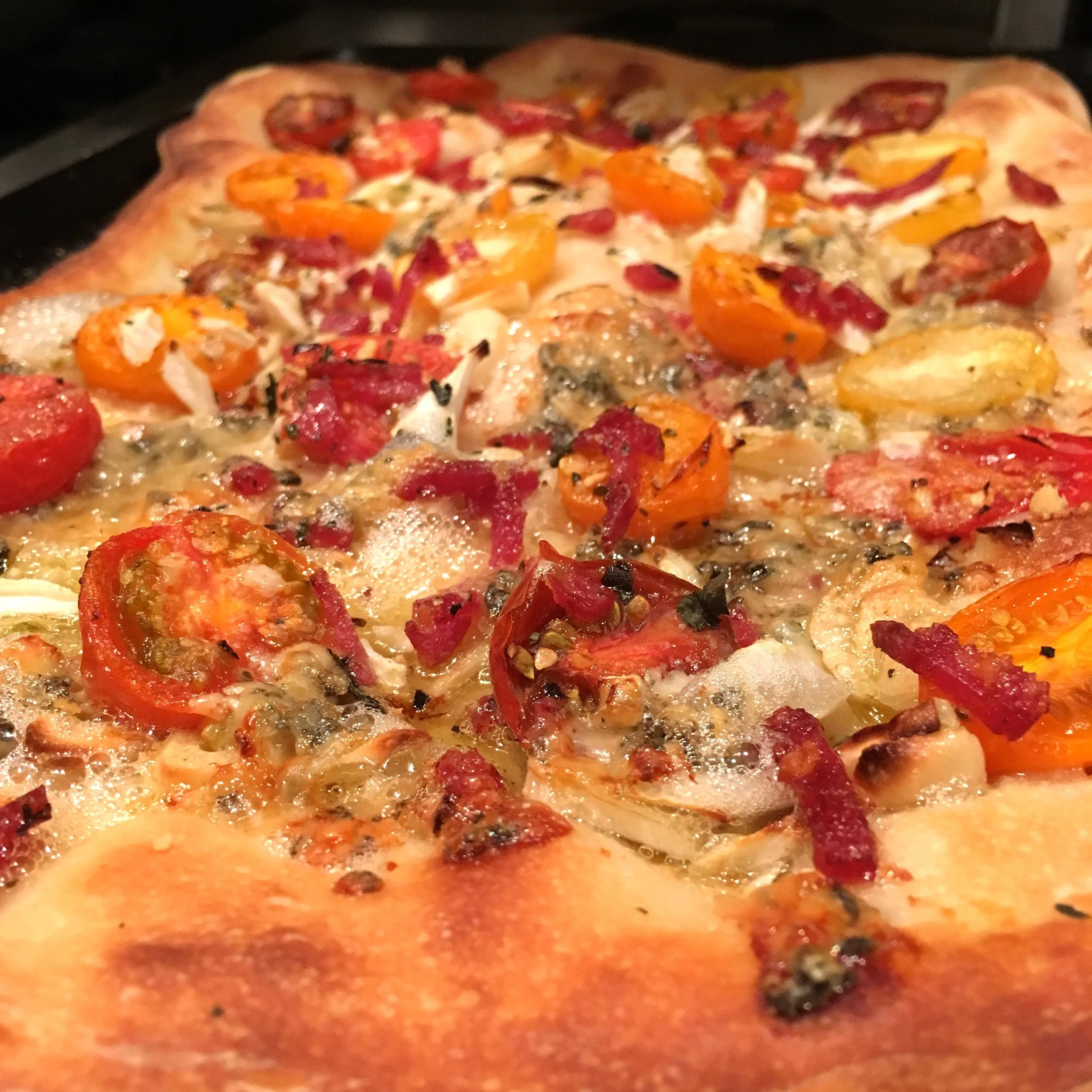 mini grape tomatoes, caramelized fennel + onion, sopressata and stilton